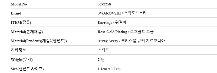 5692258 스와로브스키 SWAROVSKI 여성 귀걸이