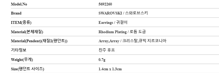 5692260 스와로브스키 SWAROVSKI 여성 귀걸이