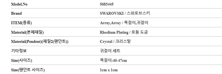 5683445 스와로브스키 SWAROVSKI 여성 목걸이 귀걸이 세트