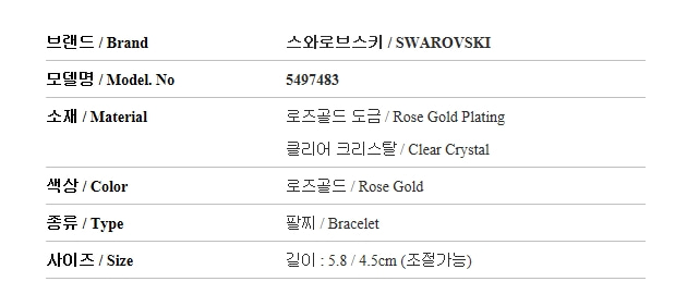 5497483 스와로브스키 SWAROVSKI 여성 팔찌