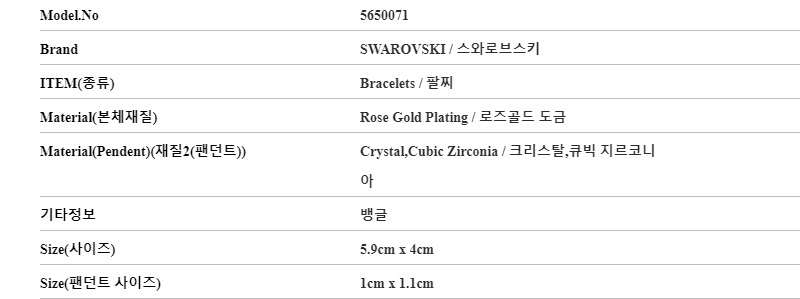5650071 스와로브스키 SWAROVSKI 여성 팔찌
