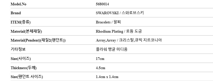 5680014 스와로브스키 SWAROVSKI 여성 팔찌