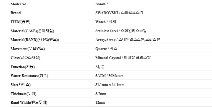 5644075 스와로브스키 SWAROVSKI 여성 시계