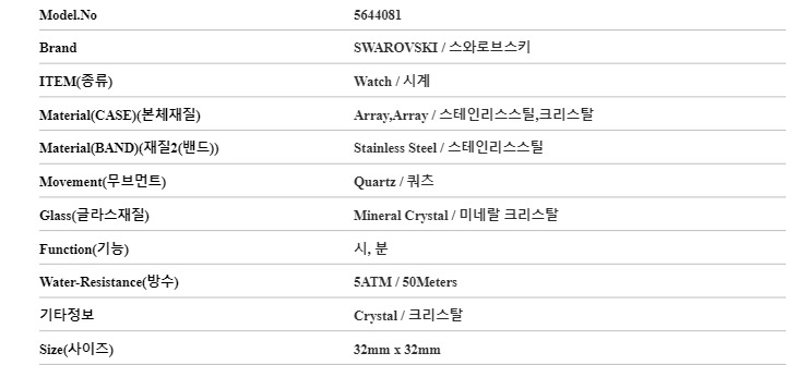 5644081 스와로브스키 SWAROVSKI 여성 시계