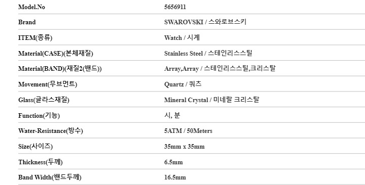 5656911 스와로브스키 SWAROVSKI 여성 시계