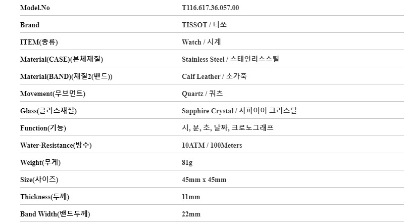 T116.617.36.057.00 TISSOT 티쏘 남성 시계
