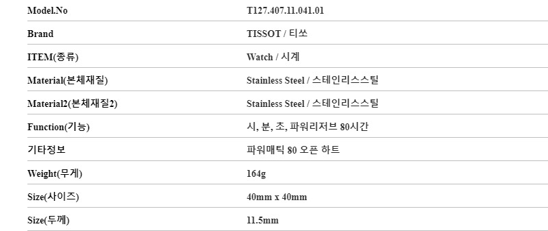 T127.407.11.041.01 TISSOT 티쏘 남성 시계