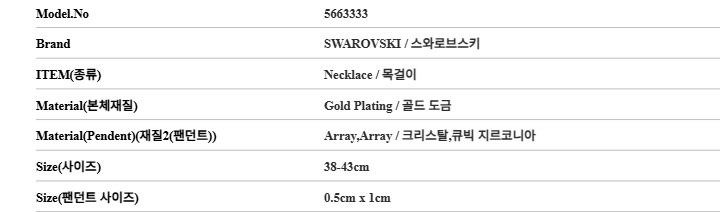 5663333 스와로브스키 SWAROVSKI 여성 목걸이
