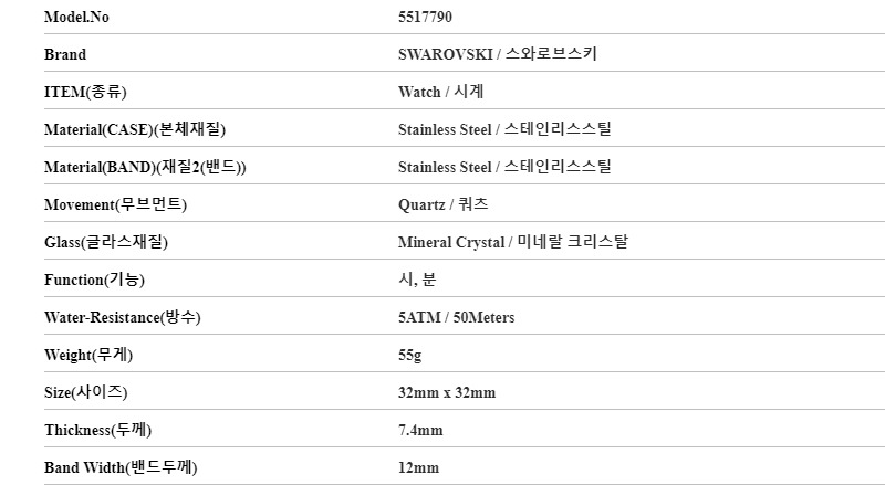 5517790 스와로브스키 SWAROVSKI 여성 시계