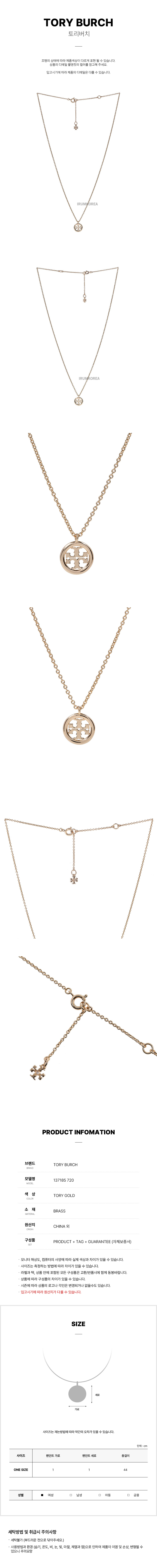 (롯데백화점)SS25 여성 밀러 팬던트 목걸이 137185 720