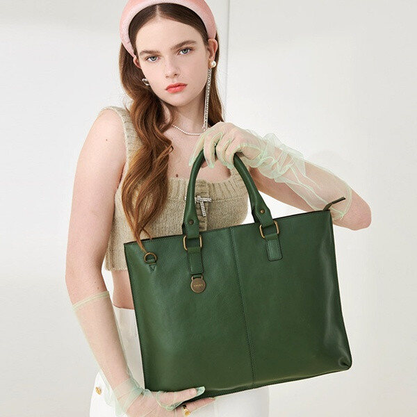 < 토트/크로스 2WAY 연출이 가능한 남녀노소 추천하는 넉넉한 사이즈의 서류가방 >부드러운 터치감에 내추럴한 느낌이 돋보이는 가죽을 사용하였고, 엔틱 청동 도금 장식이 멋스러움을 더해 클래식한 무드가 돋보이는 가방입니다.정면의 동전 로고 장식과 중앙 절개 디자인으로 포인트를 주었고,옆면과 바닥의 경계가 없어 깔끔하고 캐주얼한 디자인의 제품입니다.A4와 태블릿이 넉넉히 들어가는 사이즈에 지퍼클로징으로 안전한 수납이가능하며,자주 사용하는 카드나 휴대폰 등의 소지품은 후면 지퍼포켓에 수납할 수 있습니다.서류가방으로 착용가능하면서도 가죽과 장식에서 느껴지는 무드로 포멀한 착장 뿐만 아니라 캐주얼한 착장까지 모두 소화가능한 디자인으로 남녀노소 불문하고,직장인들과 학생들에게 추천합니다.*베지터블 가죽의 경우 소재 특성상 가죽의 원래 모습이 보존되어 있고 조직이 치밀하고 밀도가 높아 질기고 튼튼하지만, 표면 코팅을 하지 않아 손톱에도 스크래치가 나기 쉬우니 주의 부탁드립니다.**베지터블 가죽은 시간이 지남에 따라 에이징되어 더욱 멋스러운 소재입니다.***베지터블 가죽은 가죽의 원래 모습이 보존되어 있기 때문에 가죽의 주름이나 벌레물린 자국 등이 있을 수 있습니다.