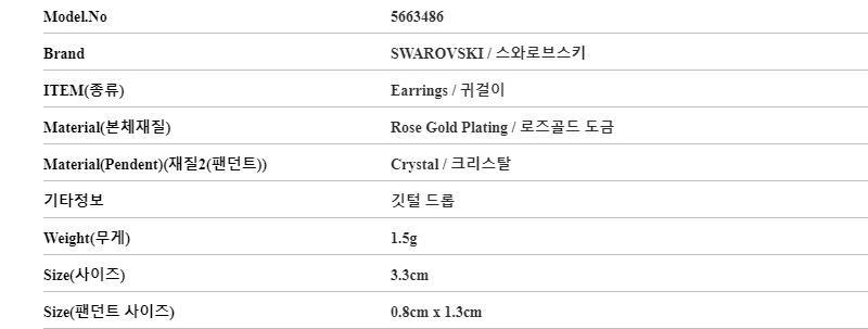 5663486 스와로브스키 SWAROVSKI 여성 귀걸이