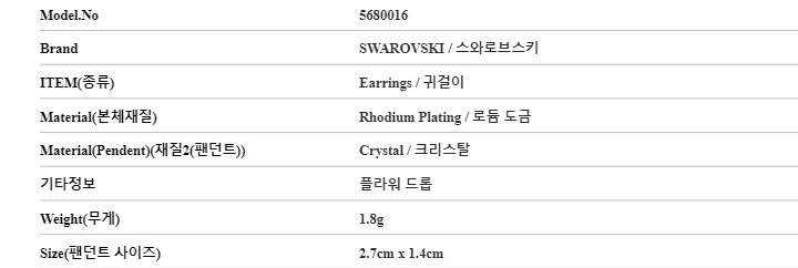 5680016 스와로브스키 SWAROVSKI 여성 귀걸이