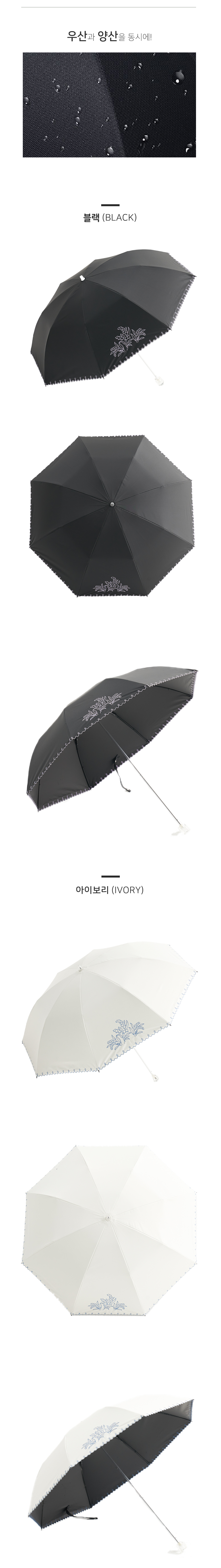 캄파눌라 자수 패턴 자외선 차단 차광율 99.9 암막 2단 수동 양우산 (우산 겸 양산) RSP-2503