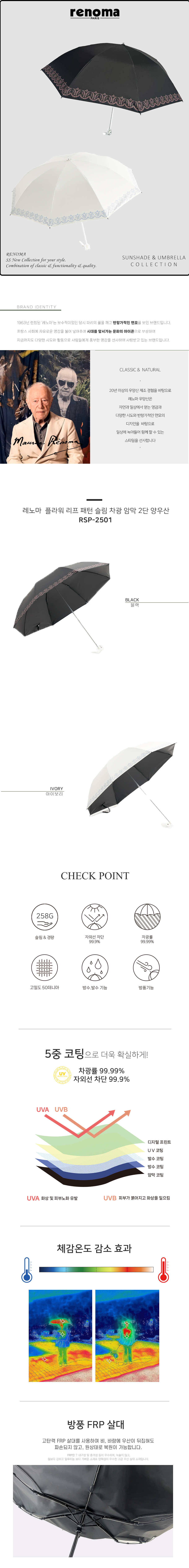 플라워 리프 패턴 자외선 차단 차광율 99.9 암막 2단 수동 양우산 (우산 겸 양산) RSP-2501