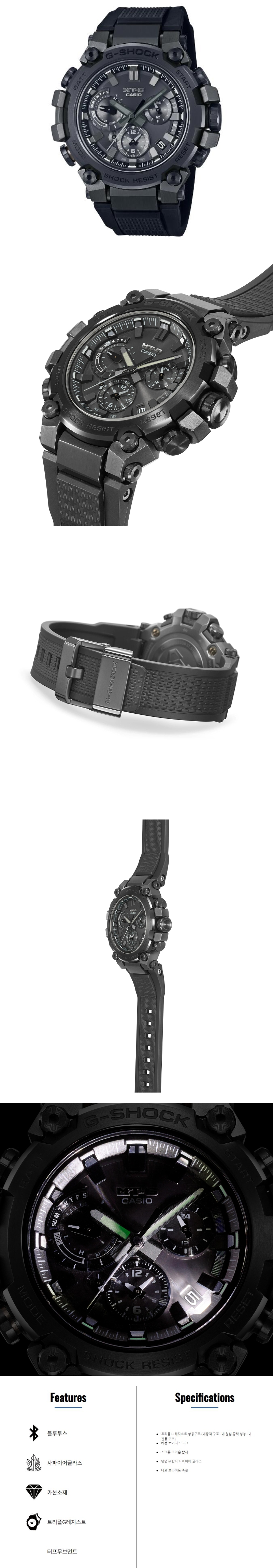 기능면에서는 Bluetooth 통신 기능에 의해 전용 앱 CASIO WATCHES와 접속해 시각 정보를 취득. 멀티 밴드 6과 터프 솔라, 고휘도의 LED 라이트도 탑재해, 프리미엄의 가치와 더불어 데일리 니즈를 포함한 전반적인 사용 환경에서의 실용미가 돋보이는 매력적인 MT-G B3000은 어떠한 모험에도 Best 성능을 유지합니다.