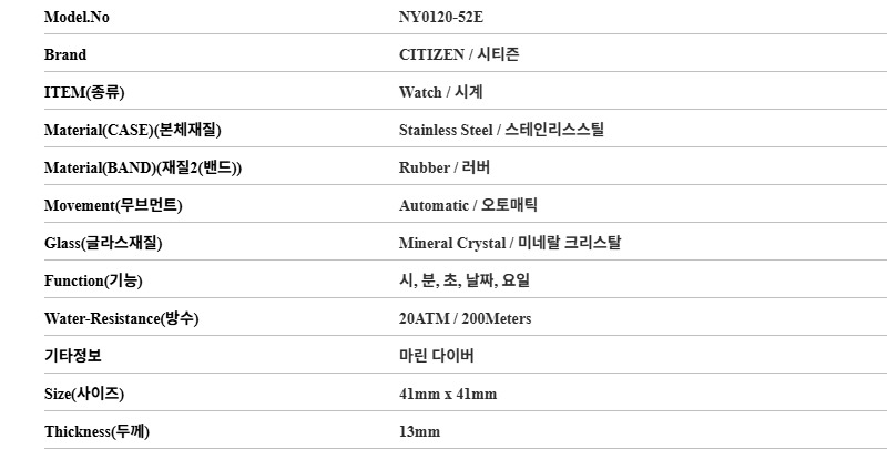 NY0120-52E 프로마스터마린다이버 오토매틱 남성 시계
