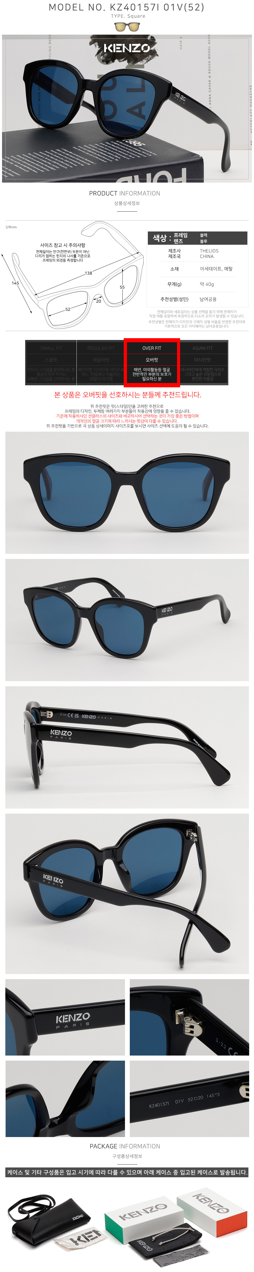 하프클럽/겐조 선글라스 KZ40157I 01V 오버핏 사각 뿔테 명품 블랙