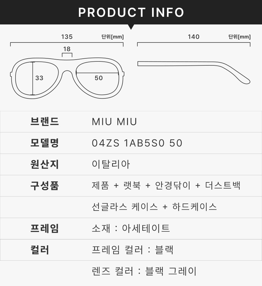 미우미우 리가드 선글라스 MU 04ZS 1AB5S0 블랙