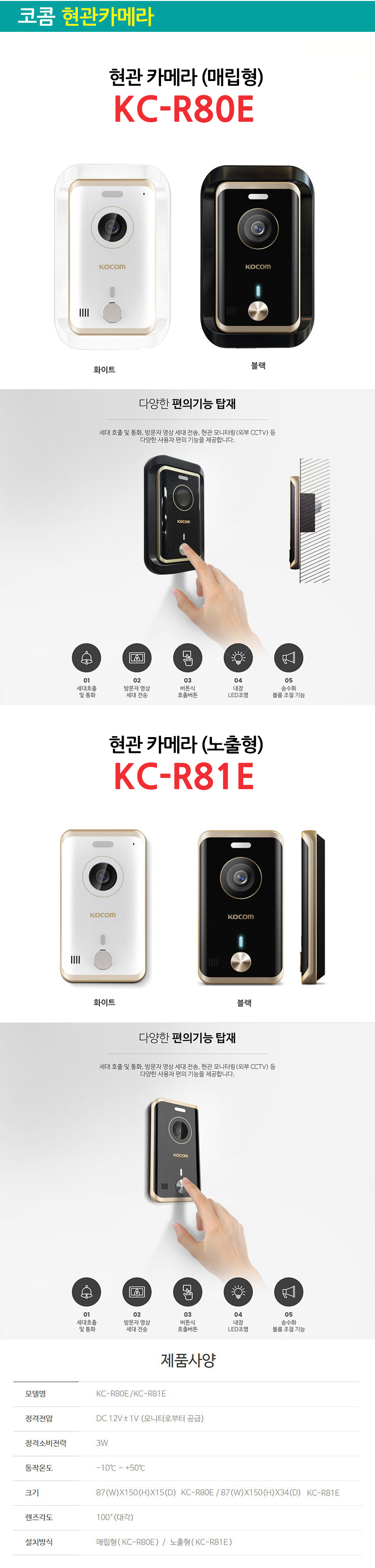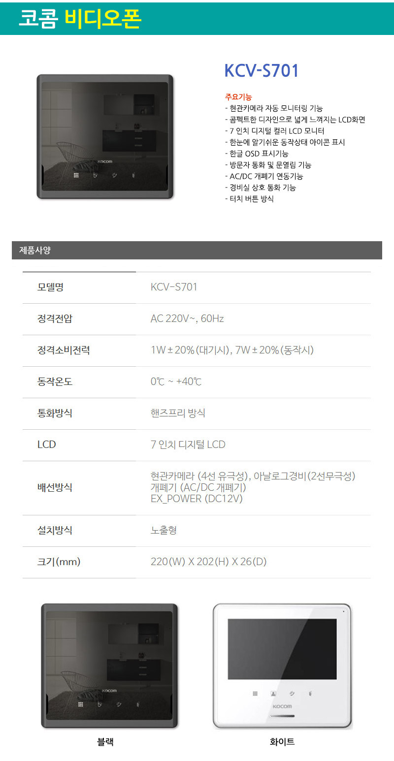리드비전몰/코콤/KCV-S701(B)/KC-R80E(B)/비디오폰+초인종 세트