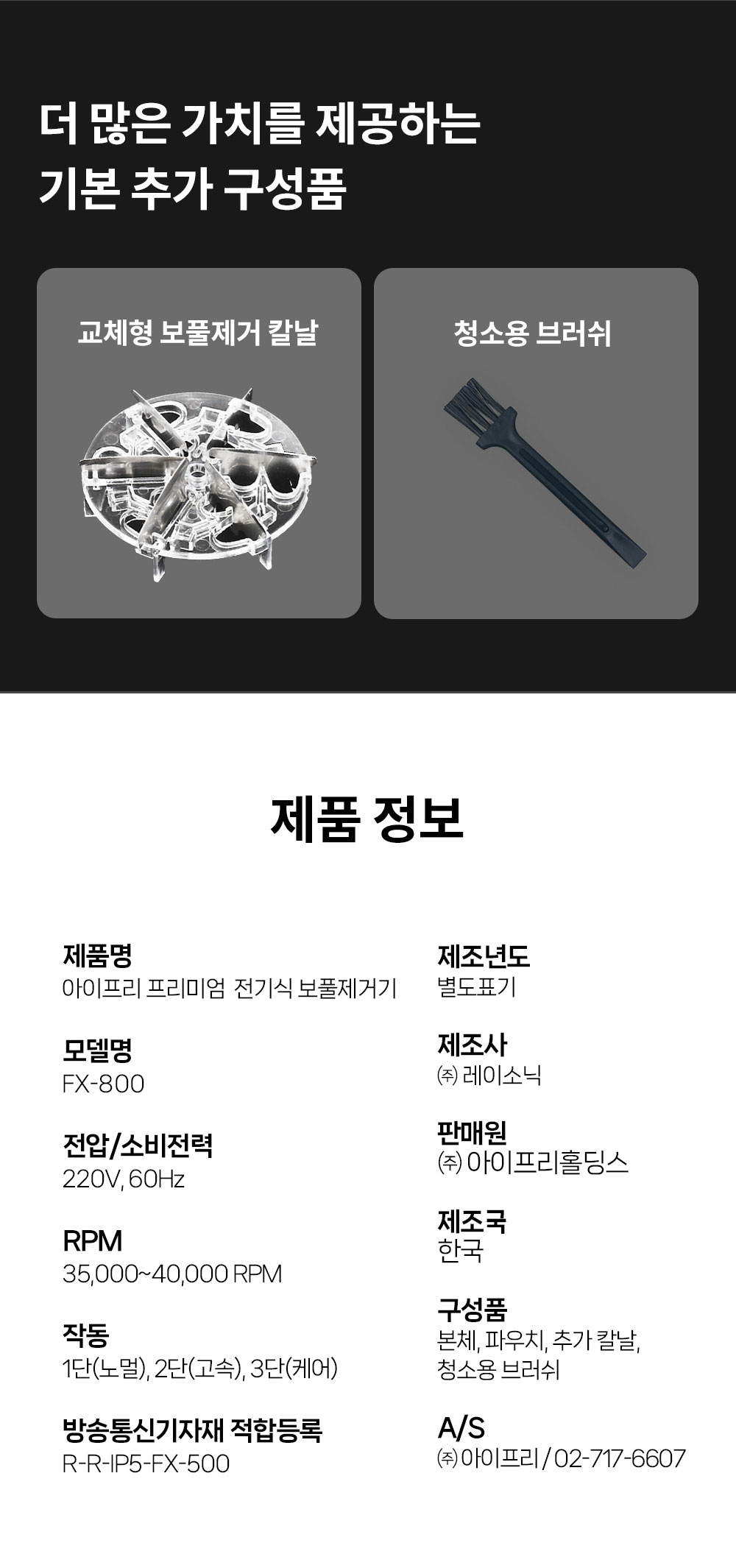 아이프리 전문가용 보풀제거기 FX-800 세탁소 업소용 충전식 티타늄코팅 6중날