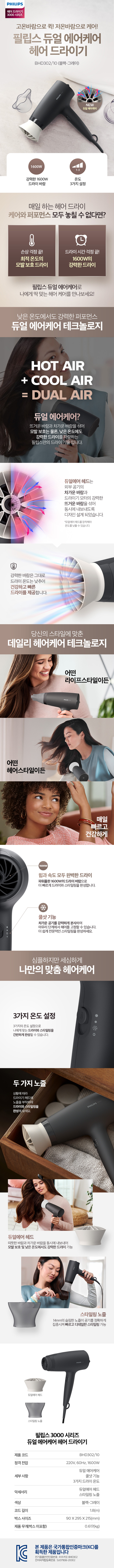 필립스 헤어드라이어 듀얼 에어케어 BHD302/10