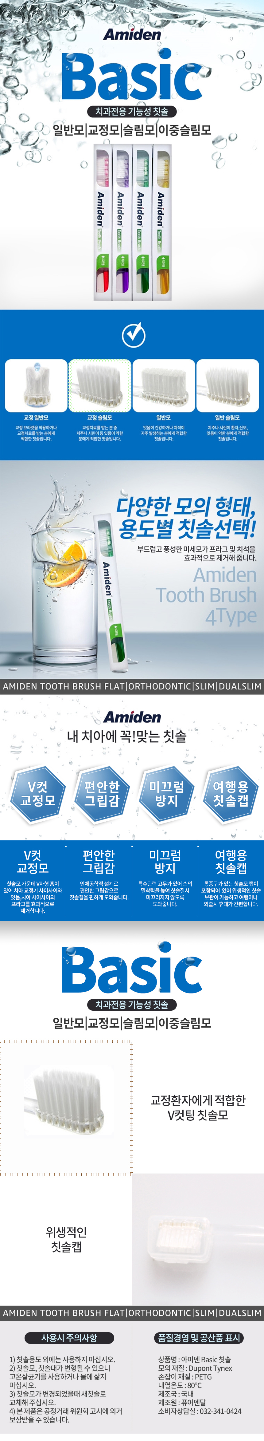 치과전용 아미덴 교정용 칫솔 12개입 (슬림모) 브이 V칫솔