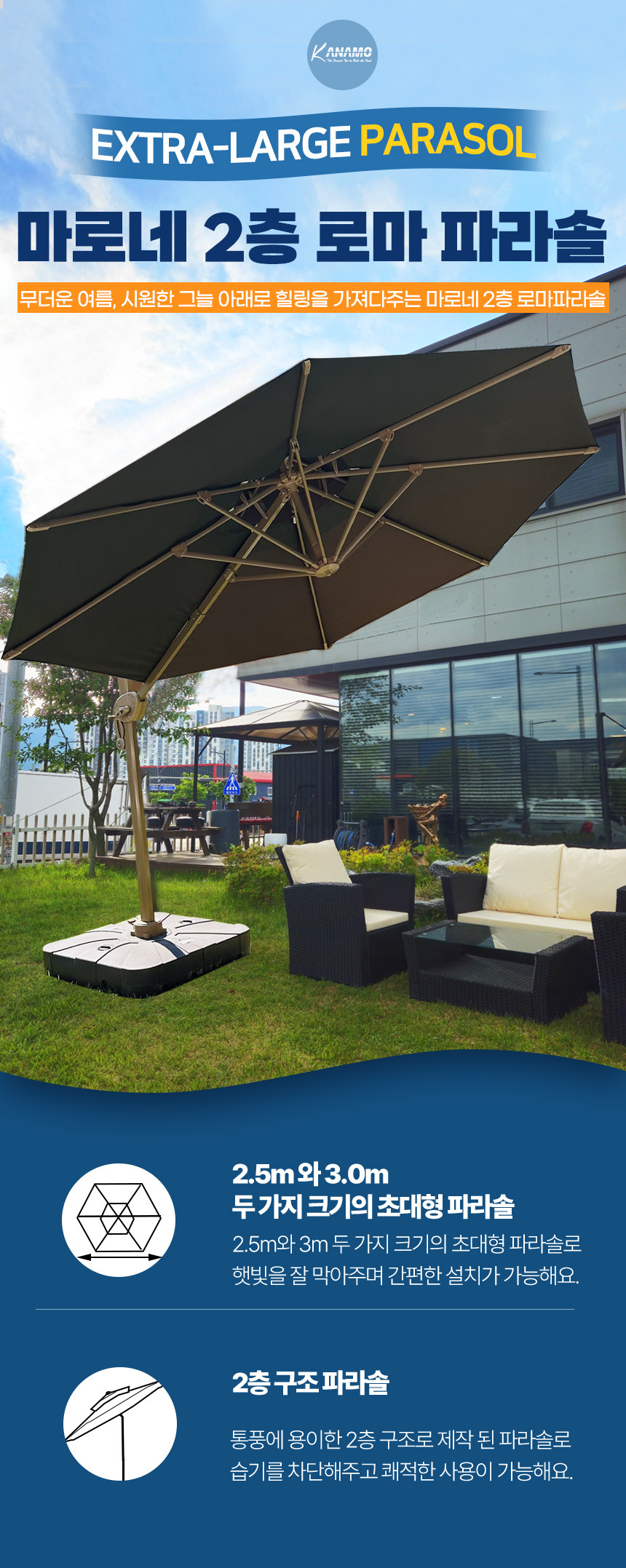 2층 로마 파라솔 원형 3M 대형 초대형 폴딩 카페 옥상 테라스 그늘막