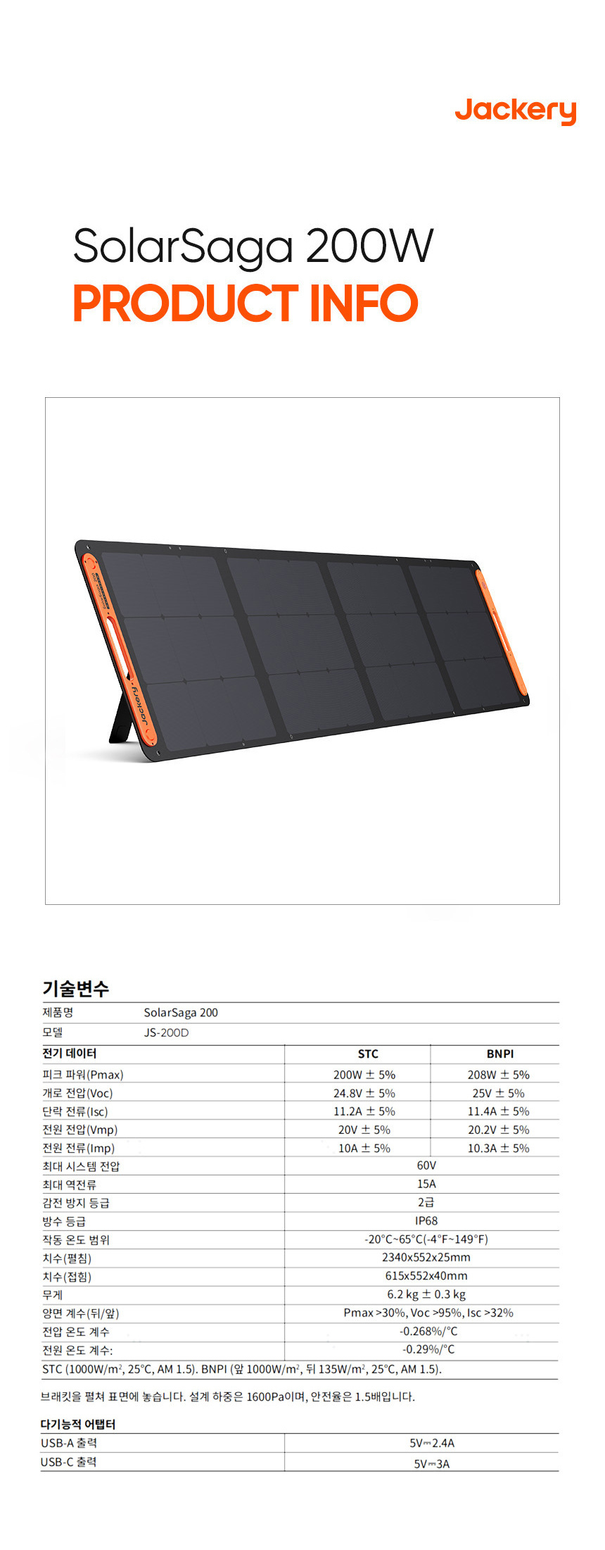잭커리 휴대용 SolarSaga 태양광패널 200W