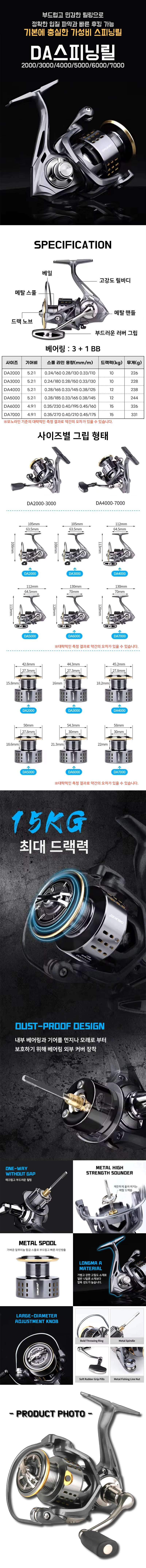 대륙 스텔라 DA스피닝릴 바다 민물 볼락 전갱이 풀치 루어 원투 릴 데우키오 DA2000
