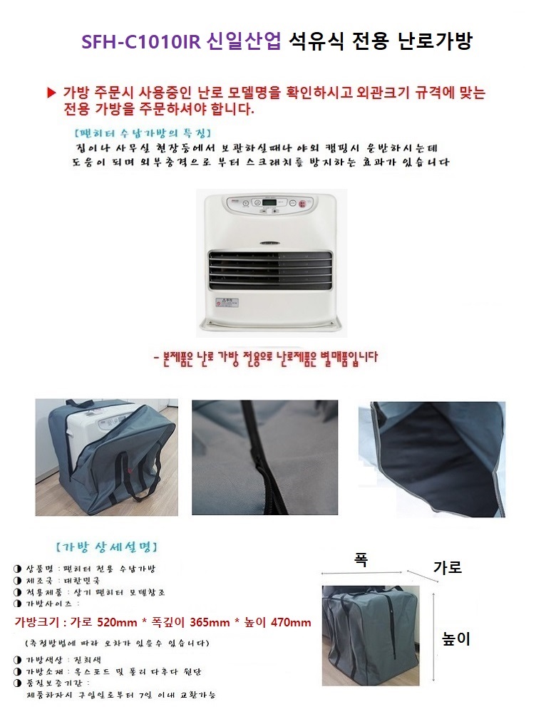 SFH-C1010IR 신일산업 팬히터 석유식난로 전용 가방