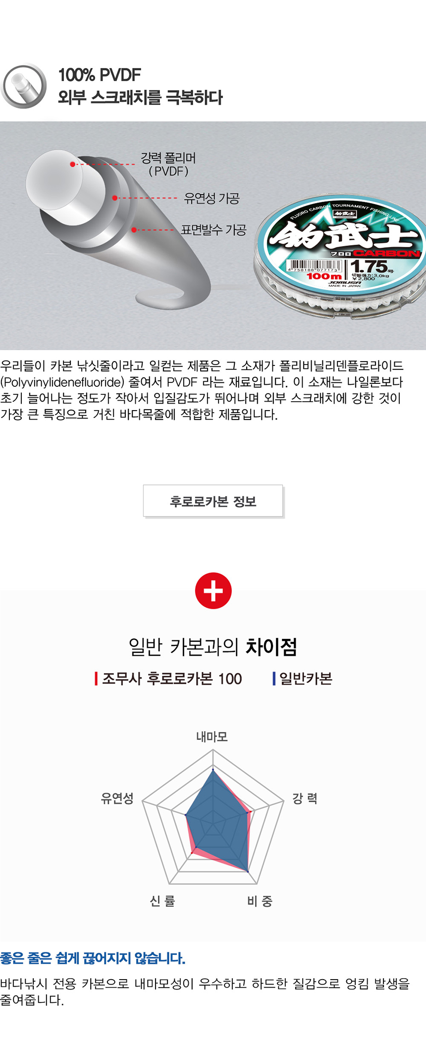 조무사 후로로 카본 목줄 100m 갯바위 바다 찌낚시목줄