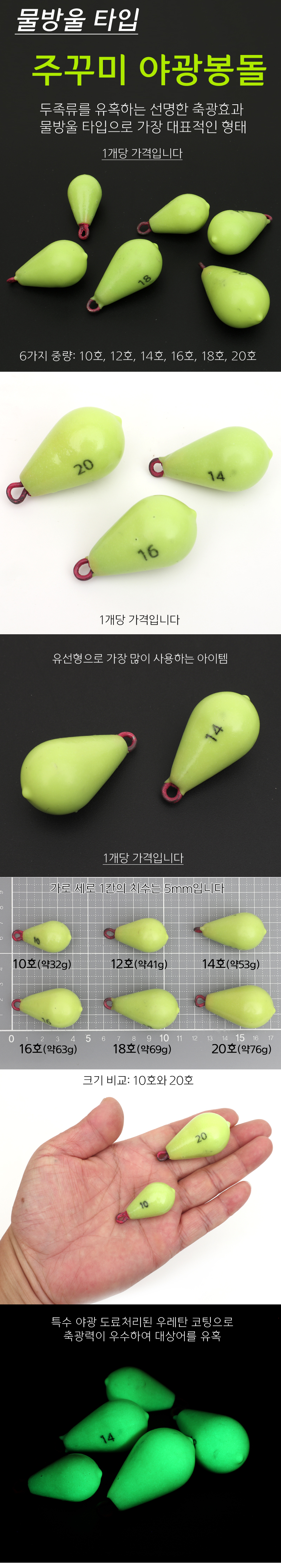 주꾸미 야광봉돌/물방울타입/낱개판매용/14호/16호/18호