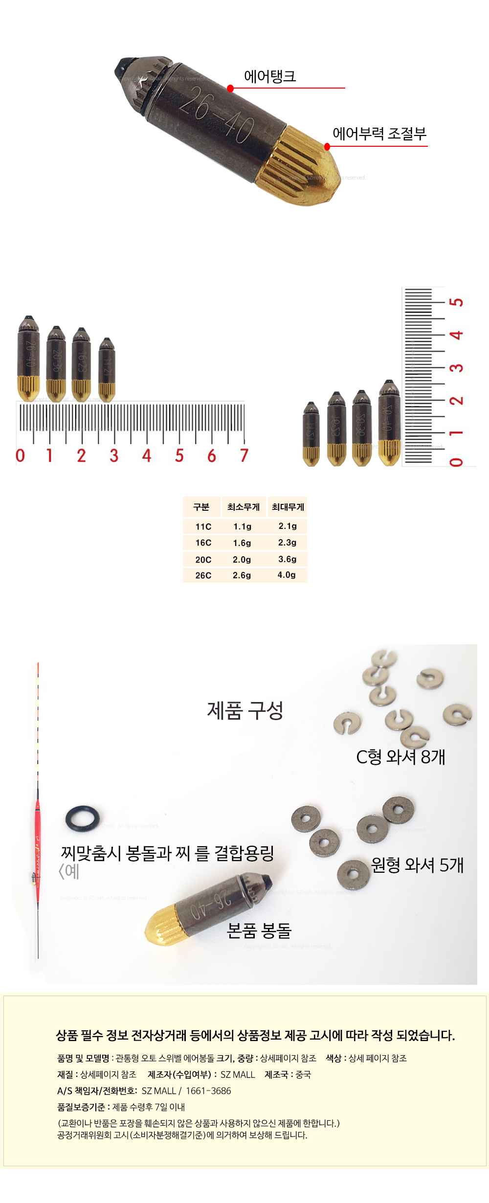 SZ몰 관통형 오토 스위벨 에어봉돌 미세조절 싱커 봉돌 고리추 다운샷추 루어 바다 민물
