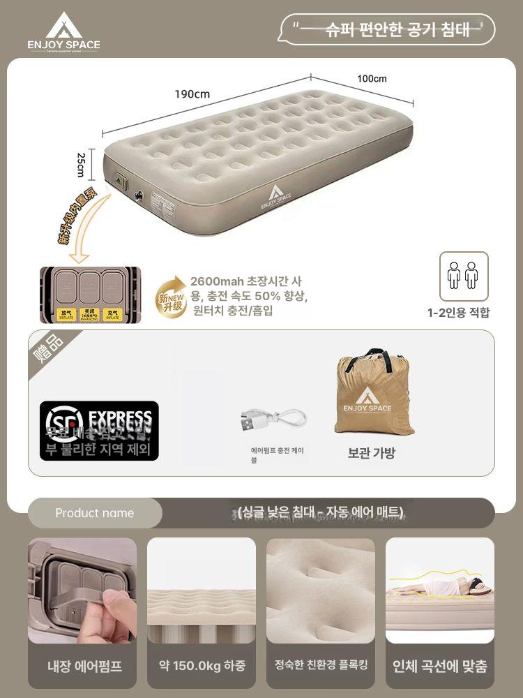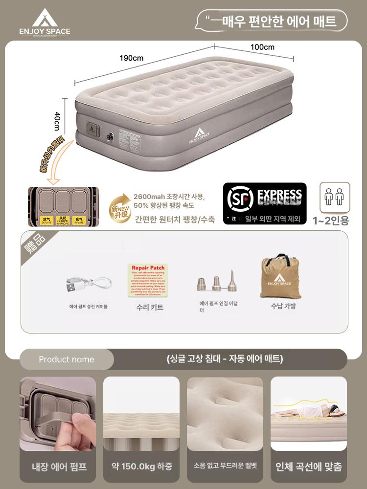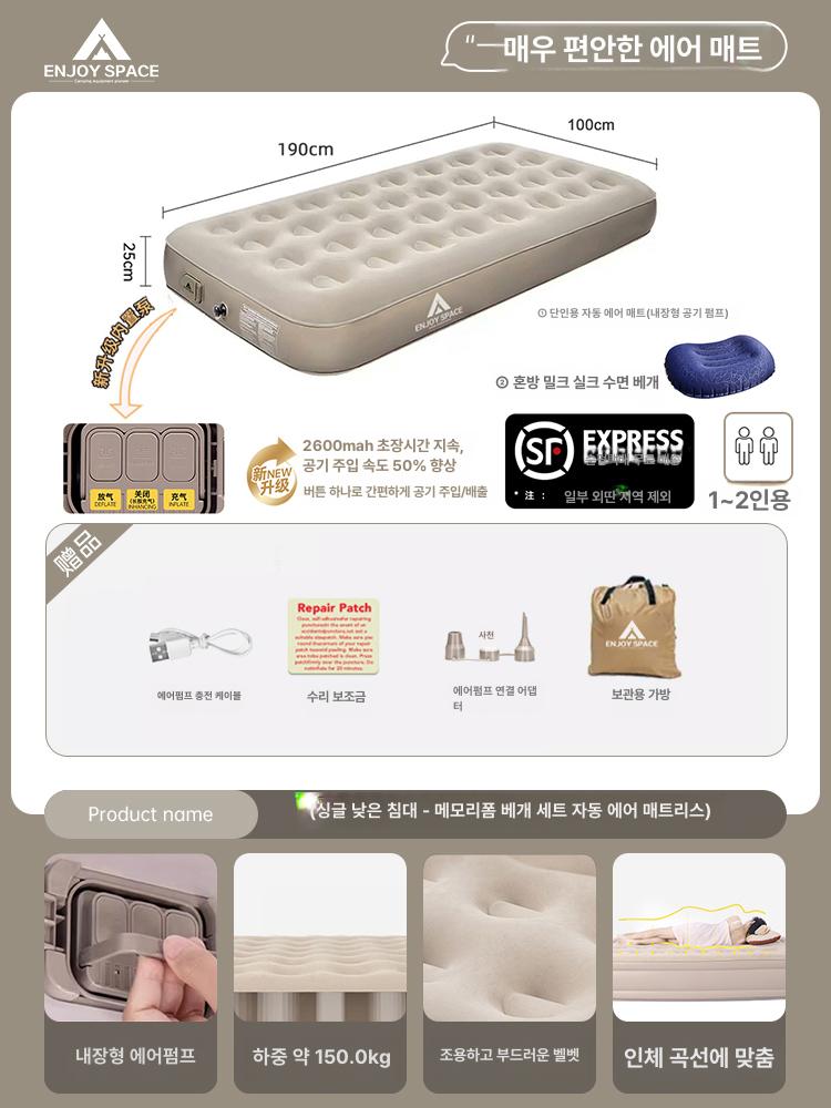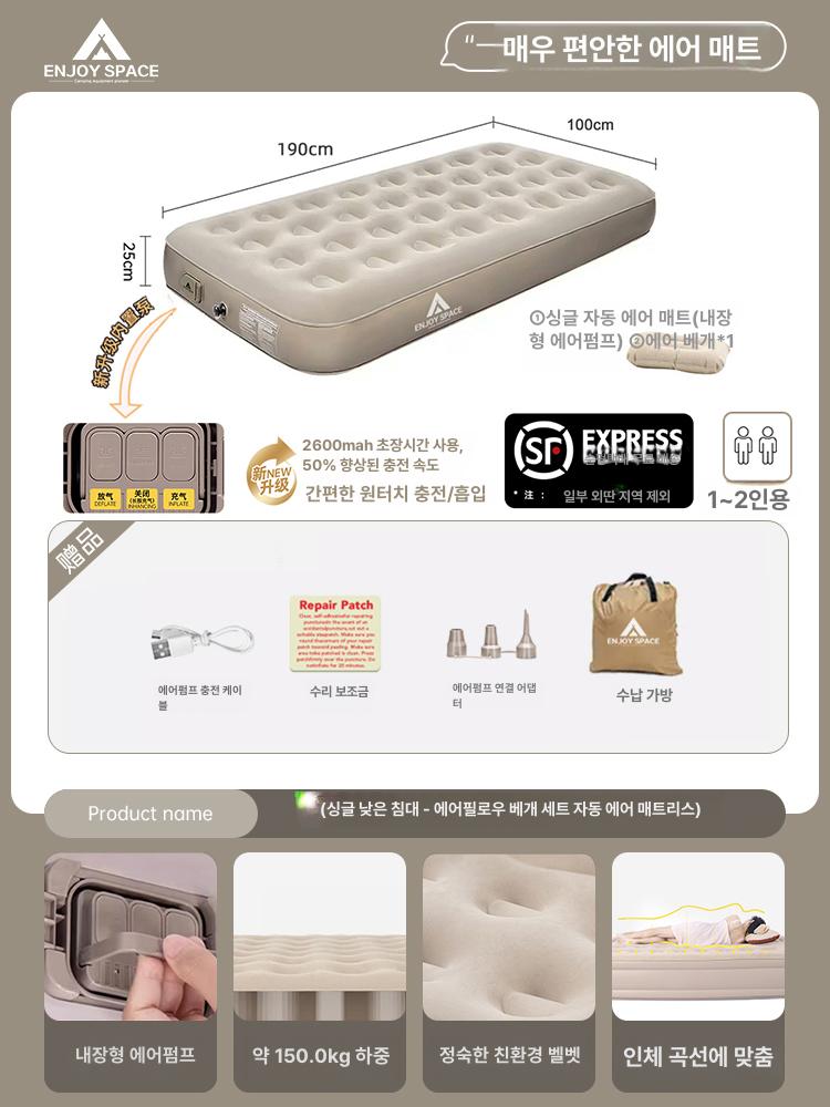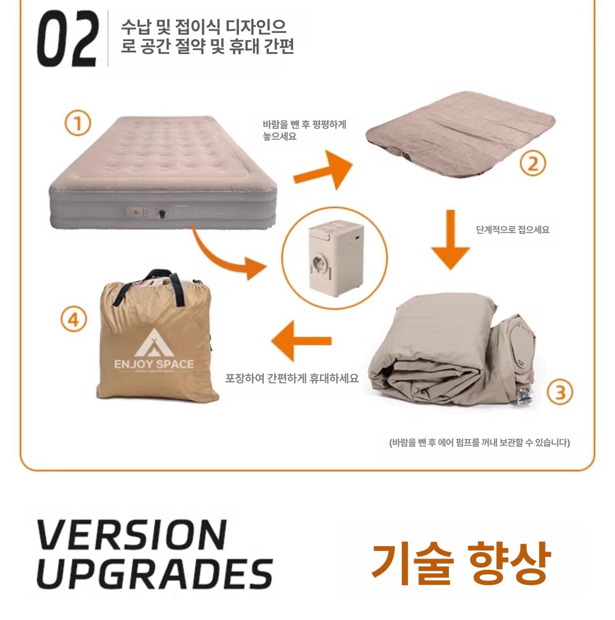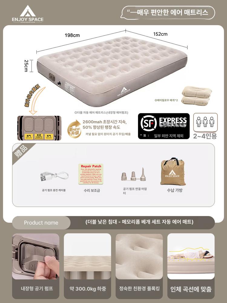 캠핑 자충매트 에어매트리스 퀸사이즈PLUS 휴대용 접이식 바닥 침대 펌프 내장형 에어침대