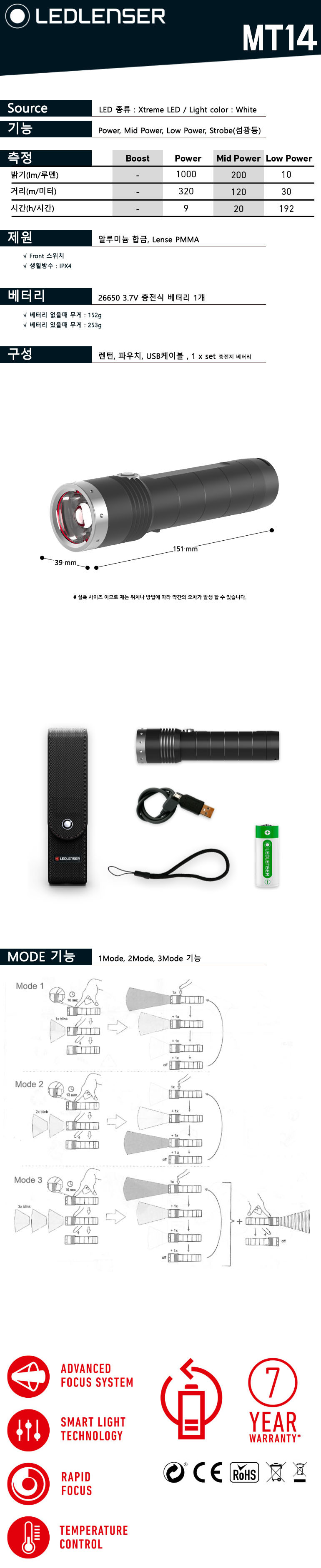 (현대Hmall)레드렌서 MT14 충전식 1000루멘 라이트