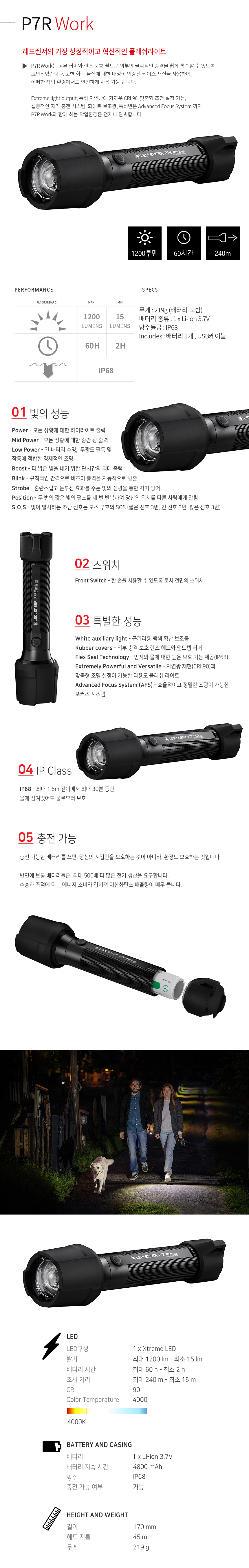 (현대Hmall)레드렌서 P7R Work 1200루멘 충전식 라이트