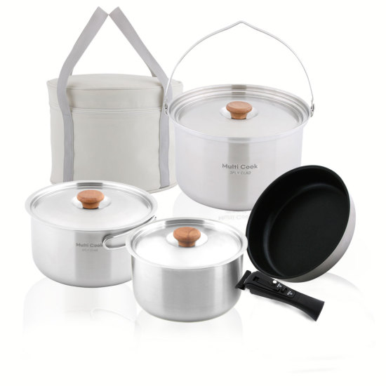 (롯데백화점)쉐프웨이 국산 멀티쿡 통3중 304스텐 캠핑 코펠세트(멀티핸들포함)