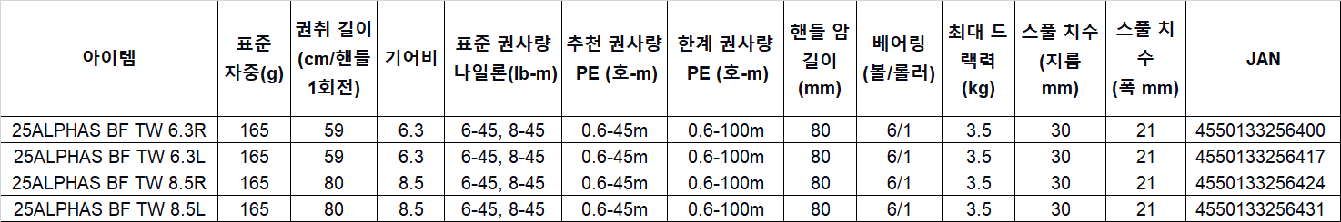 25 알파스 BF TW 8.5L (좌핸들) 베이트릴