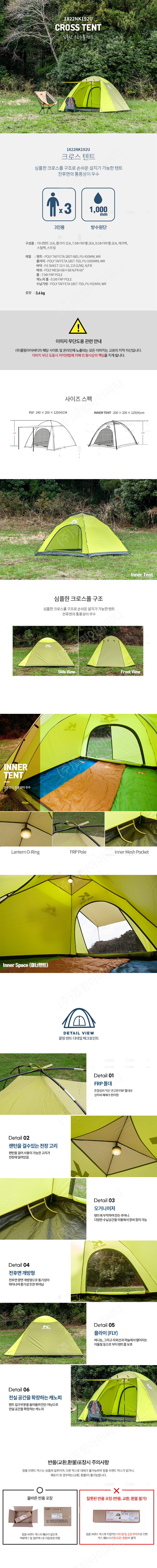 콜핑콜핑 설치 간편한 FRP폴대 개방형 방수 텐트 1822NK192U_1