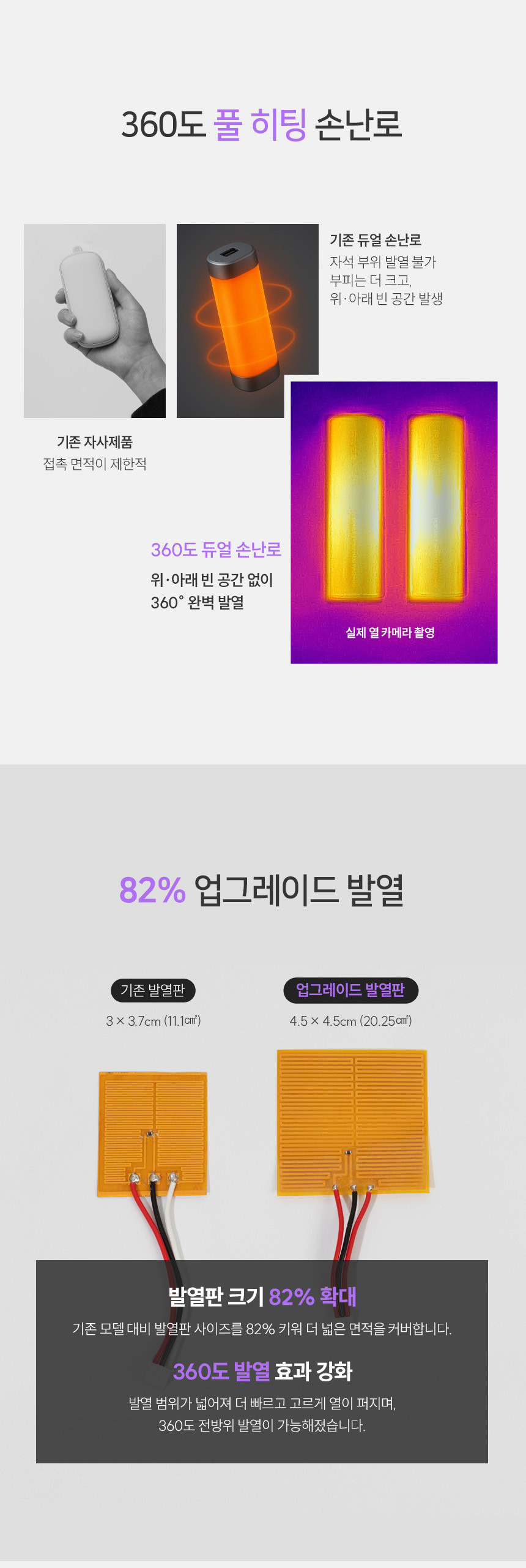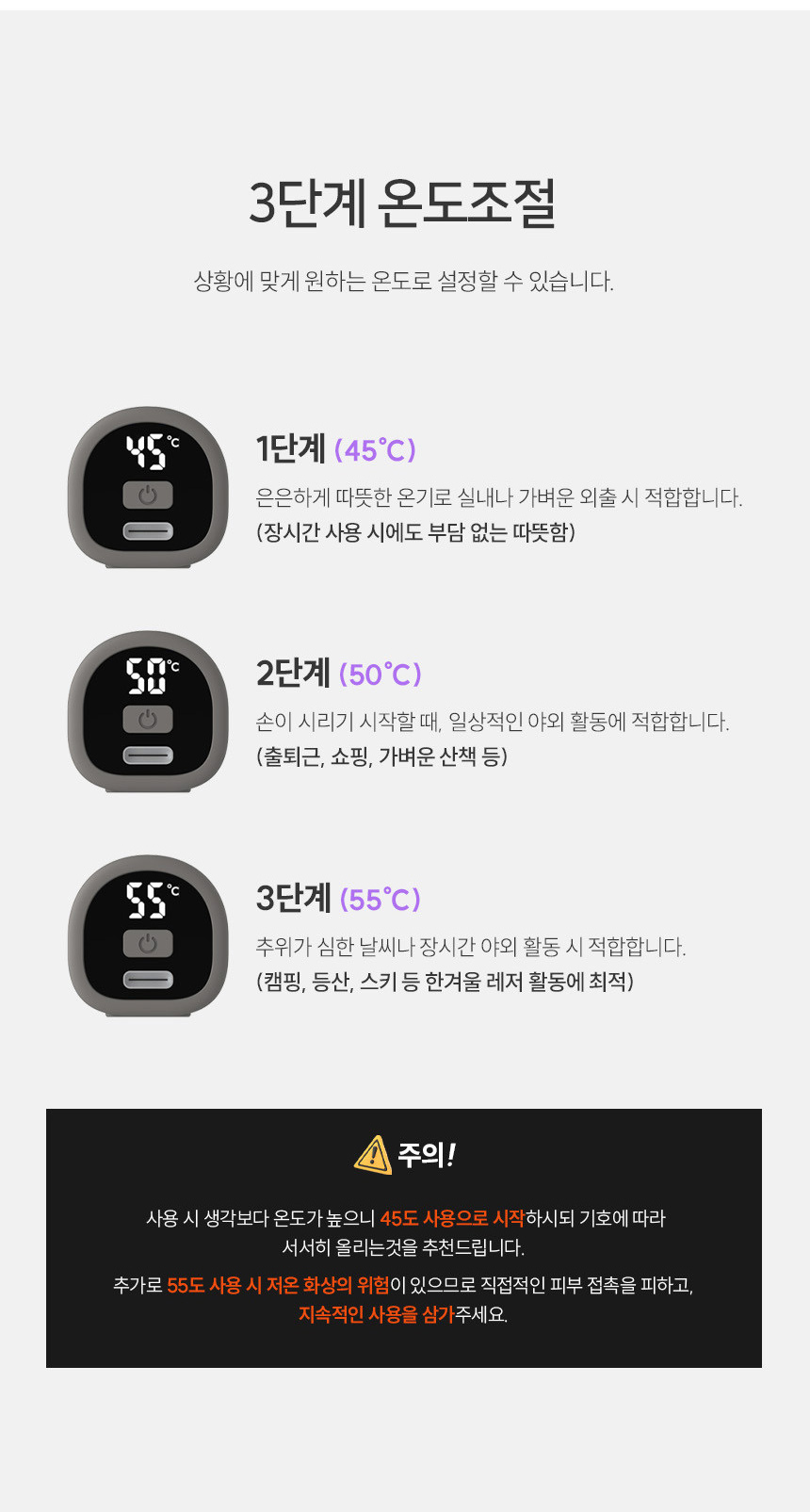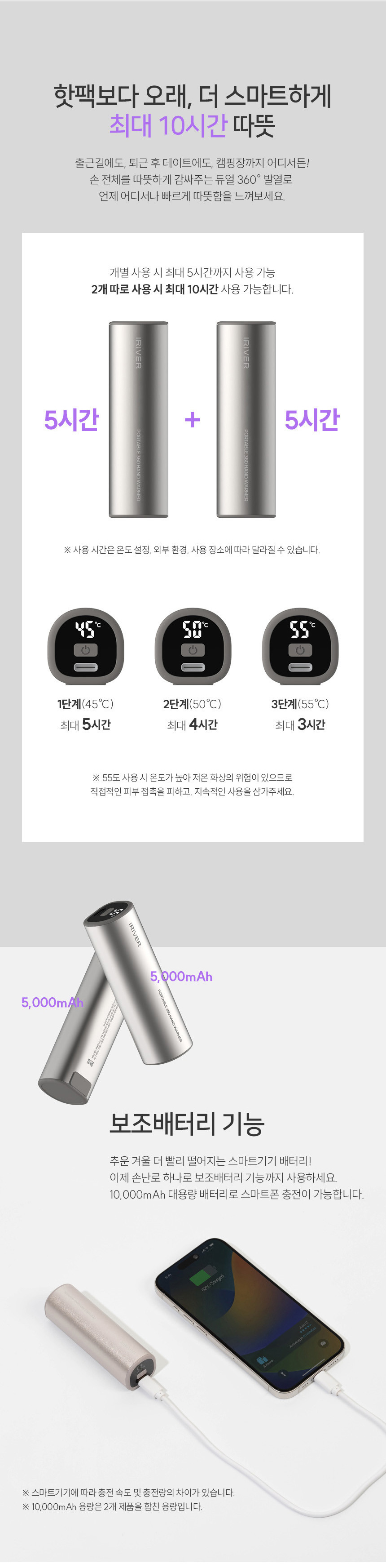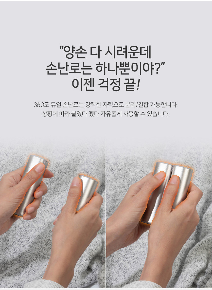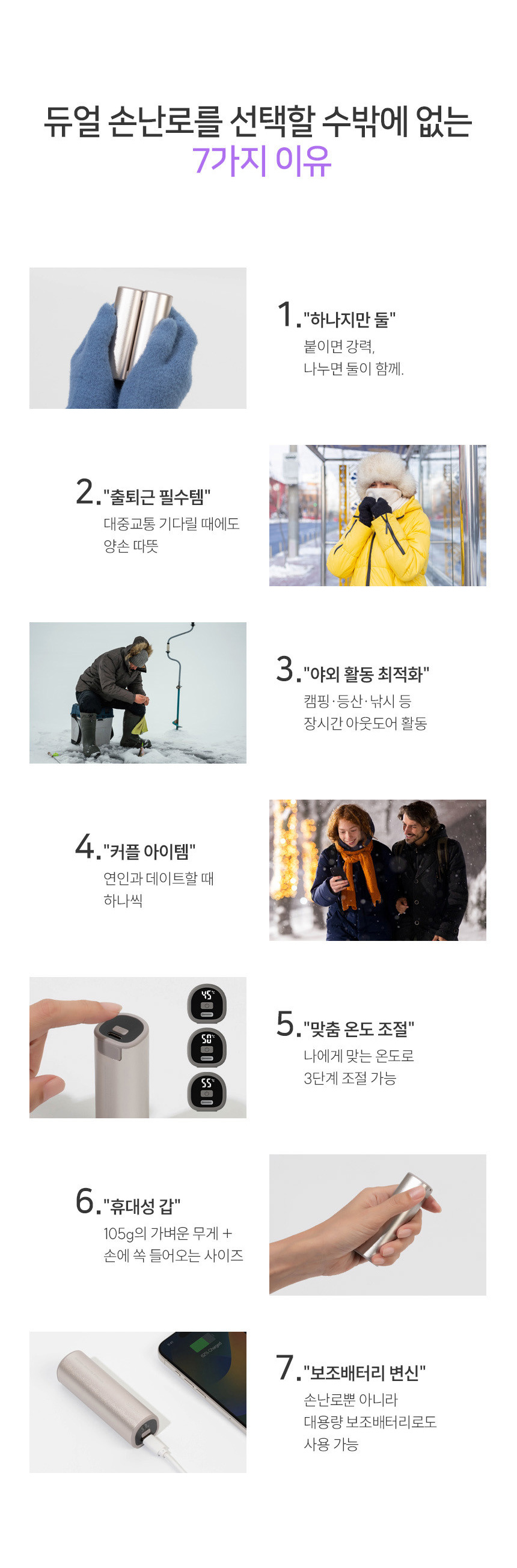 휴대용 충전식 손난로 듀얼 접착식 전자 핫팩 보조배터리 5000mAh 3단계 온도조절