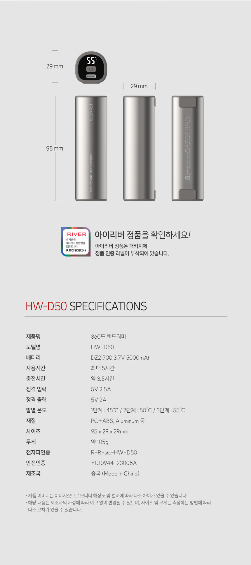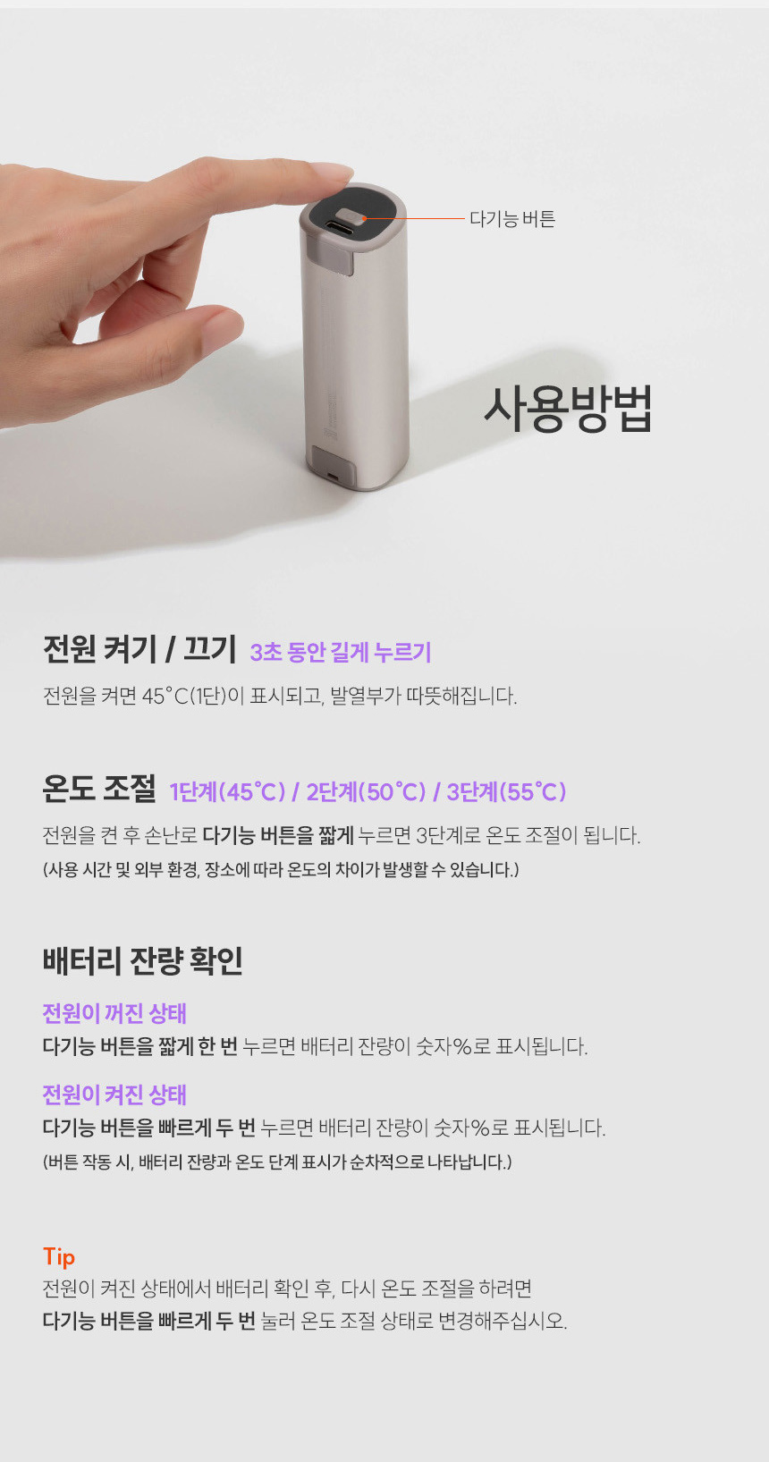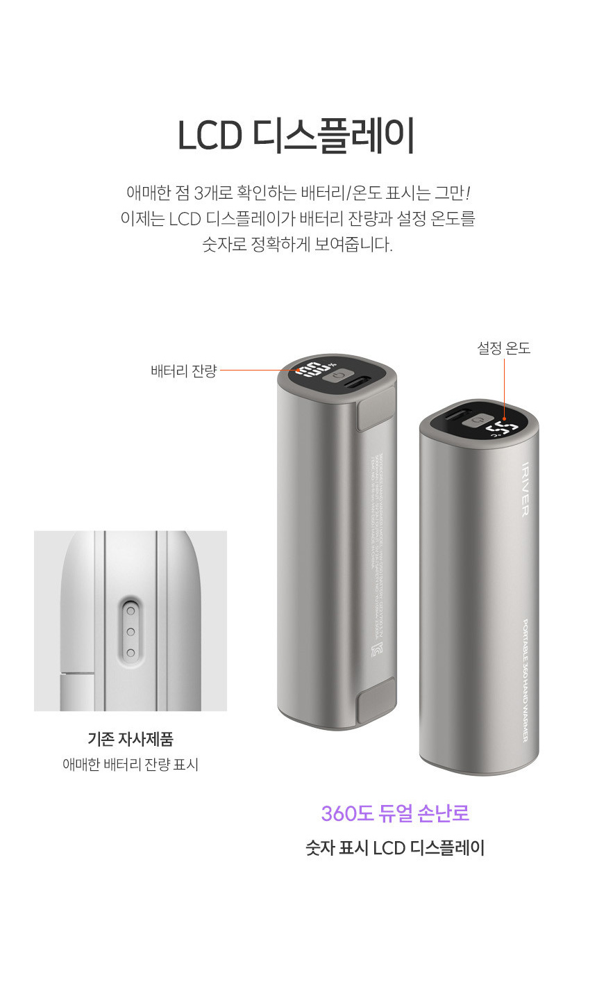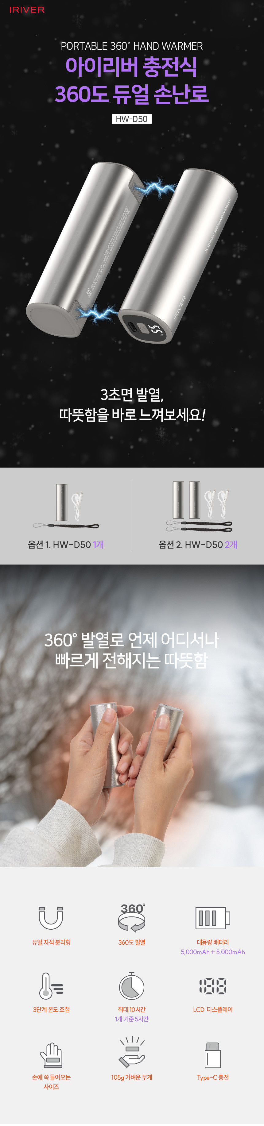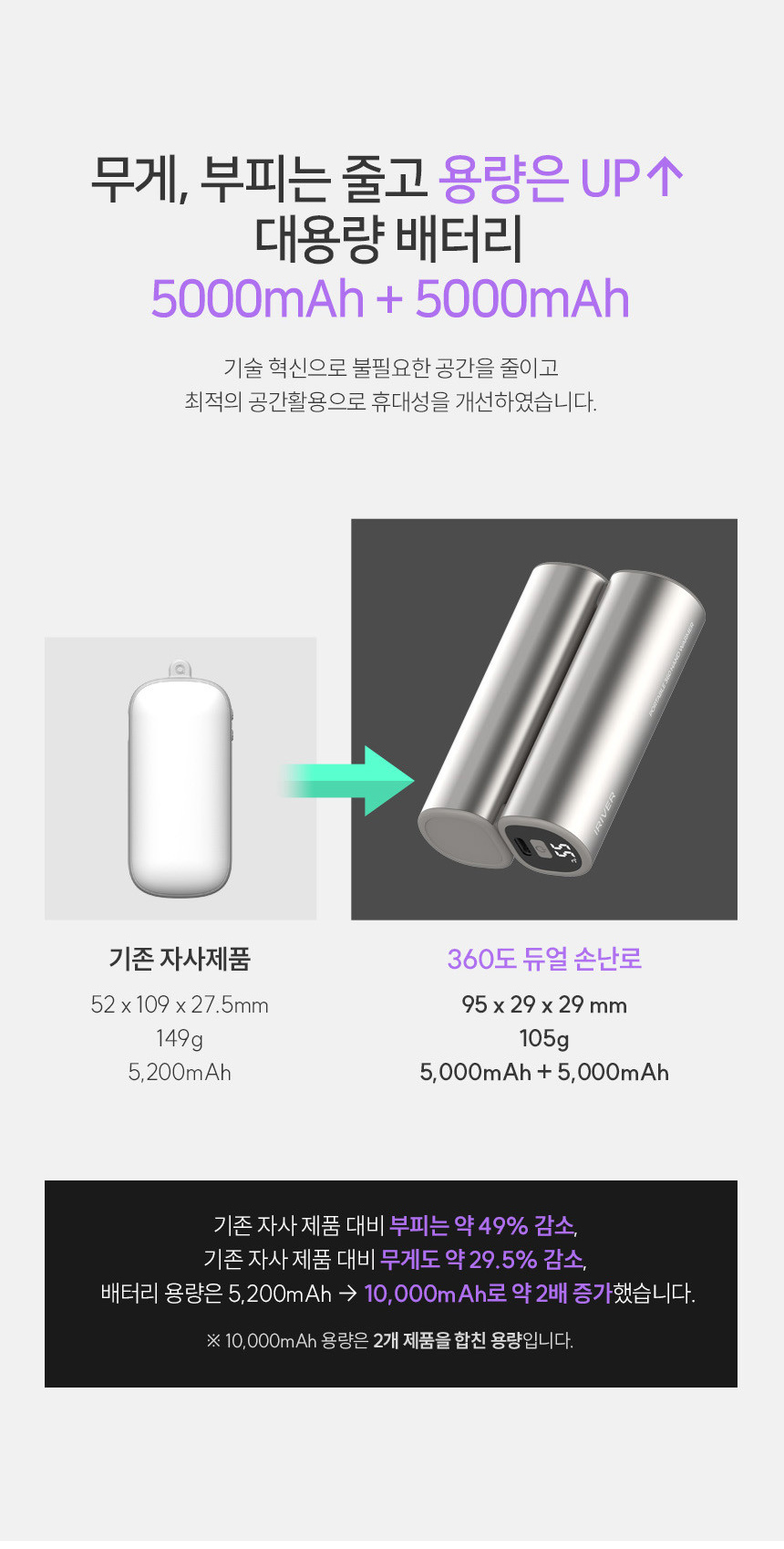 휴대용 충전식 손난로 듀얼 접착식 전자 핫팩 보조배터리 5000mAh 3단계 온도조절