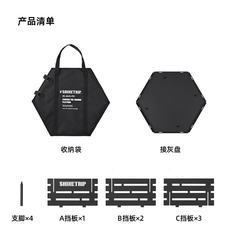 숯불그릴화로대샤인트립 조립식 육각 화로대 스테인레스 탄소강 블랙 오덕