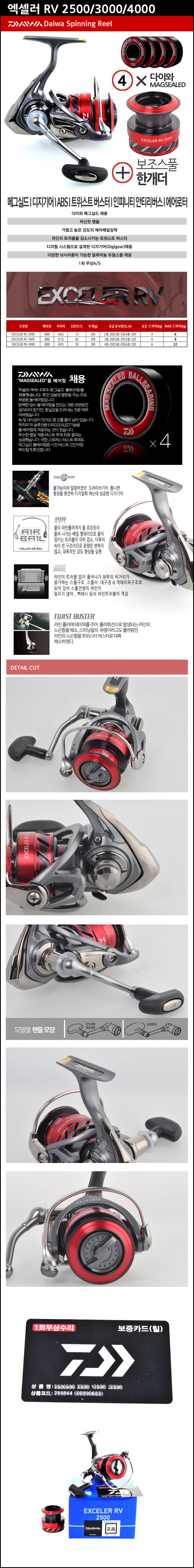 다이와 엑셀러RV 8볼 보조스풀포함 바다낚시릴 스피닝릴 2500 3000 4000 찌 부시리 참돔 벵에돔 낚시릴