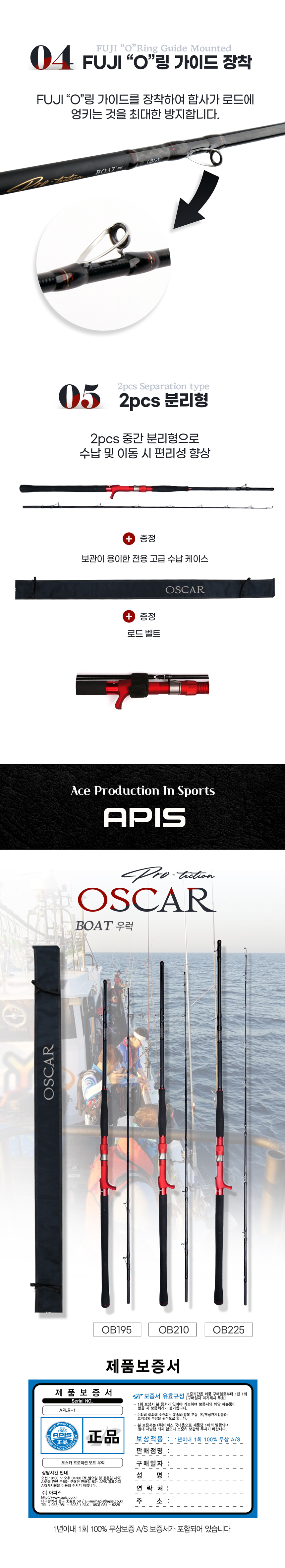 아피스 오스카 프로텍션 보트 우럭 / 선상 우럭 열기 대구 지깅 침선 어초 낚시대 우럭대