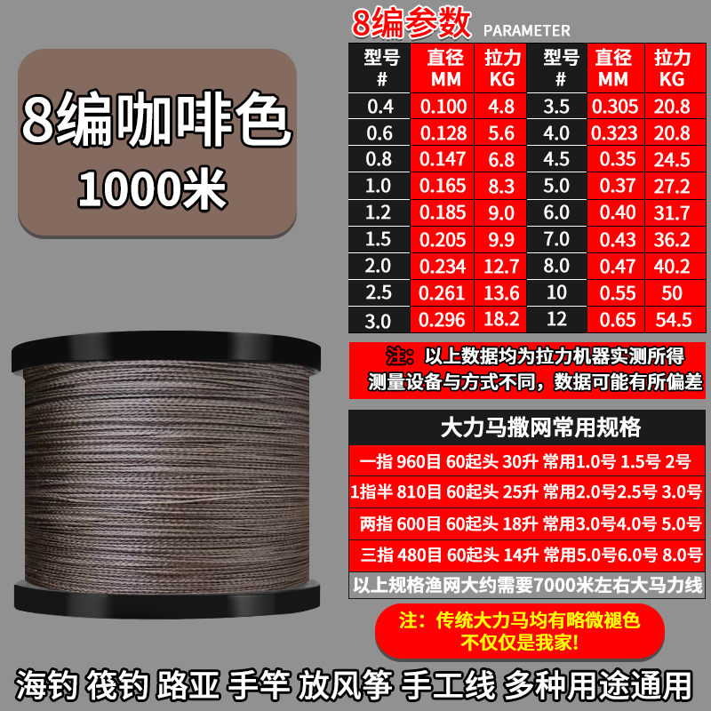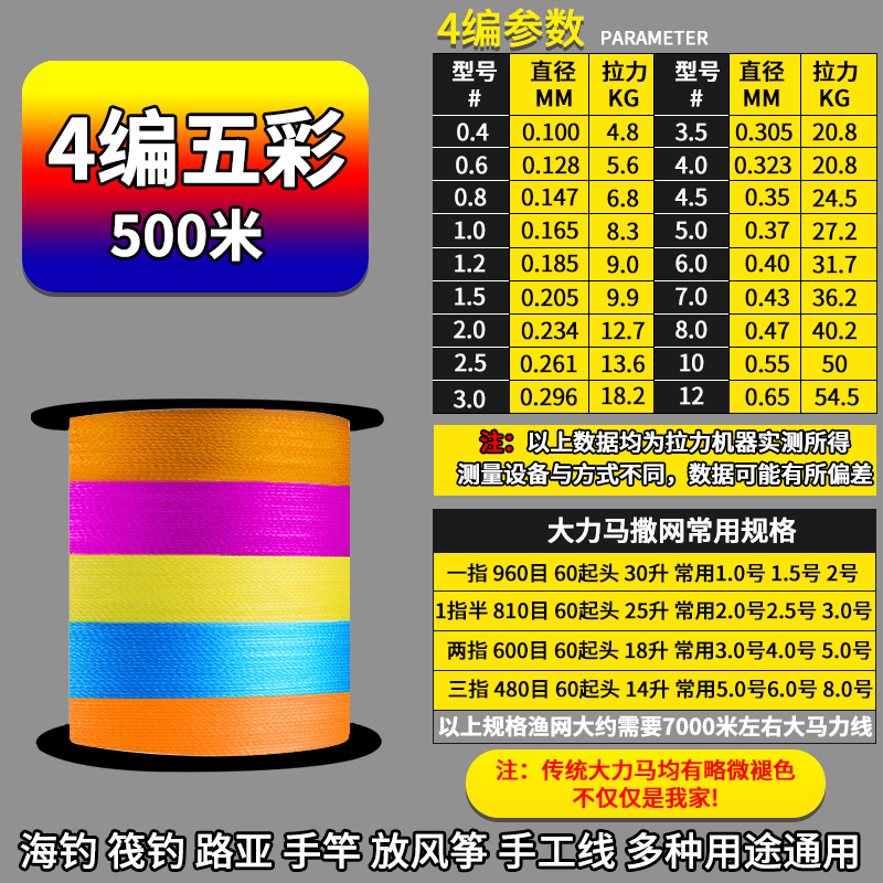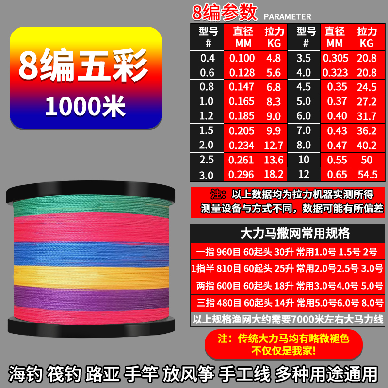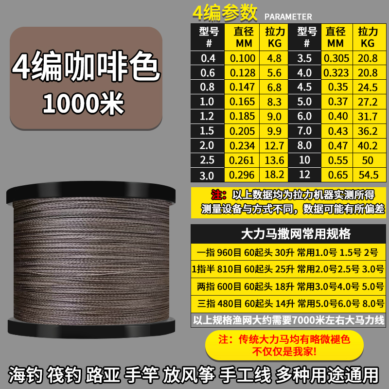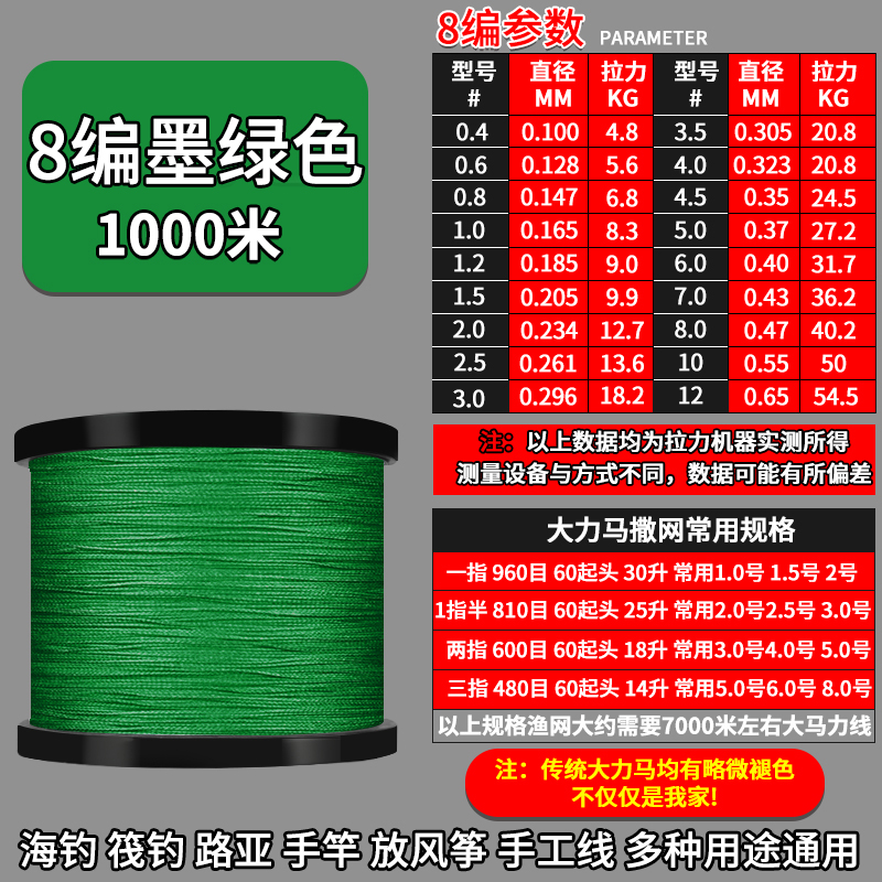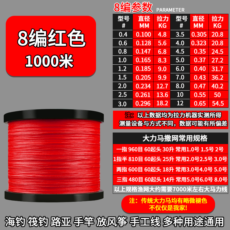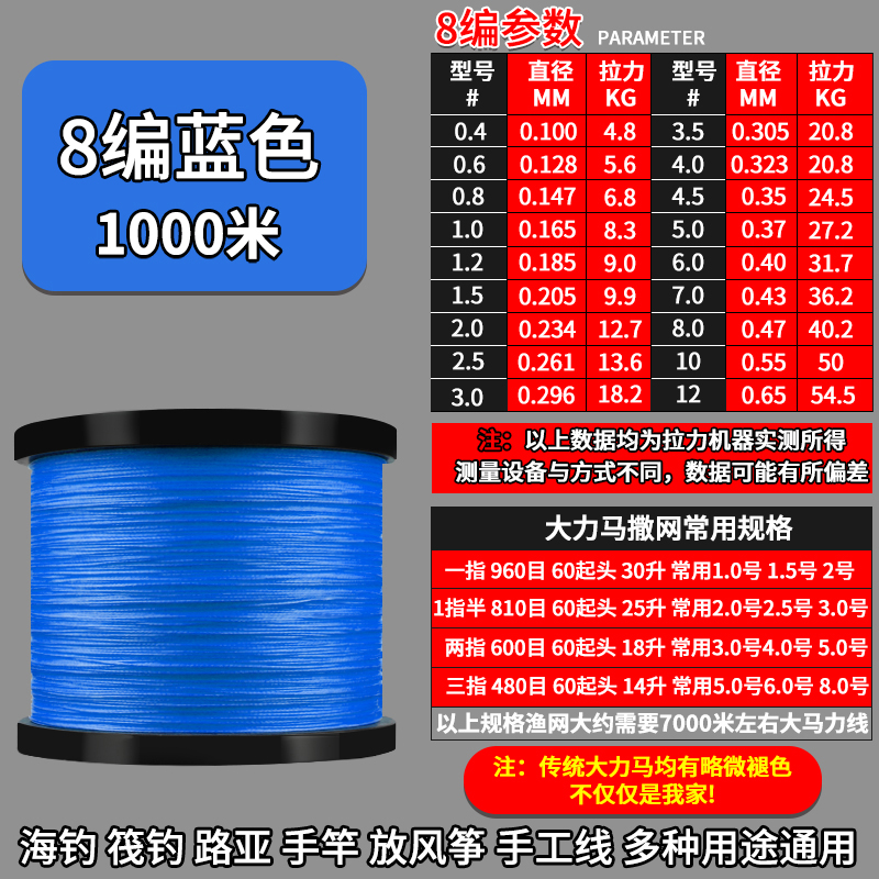 | 낚싯줄 번호 | 0.2번, 0.4번, 0.6번, 0.8번, 1번, 1.2번, 1.5번, 2번, 2.5번, 3번, 3.5번, 4번, 4.5번, 5번, 6번, 7번, 8번, 10번, 12번 |