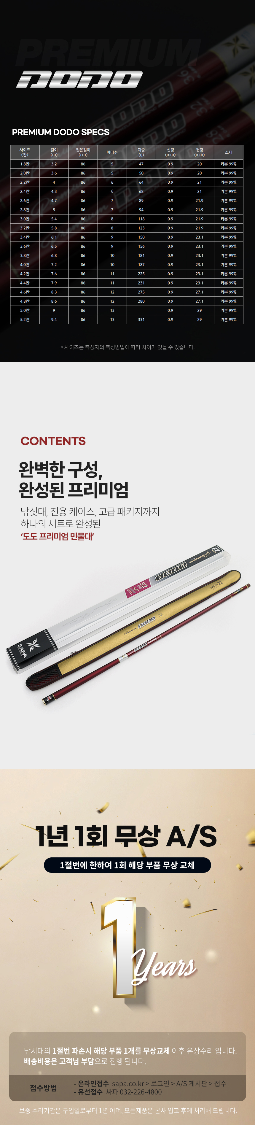 국산 SAPA 프리미엄 도도 3.6칸 민물 낚시대 경질 레자케이스 포함 1회 무상A/S