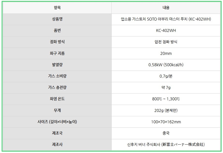 SOTO 소토 신후지버너 충전 가스 토치 KC-402WH