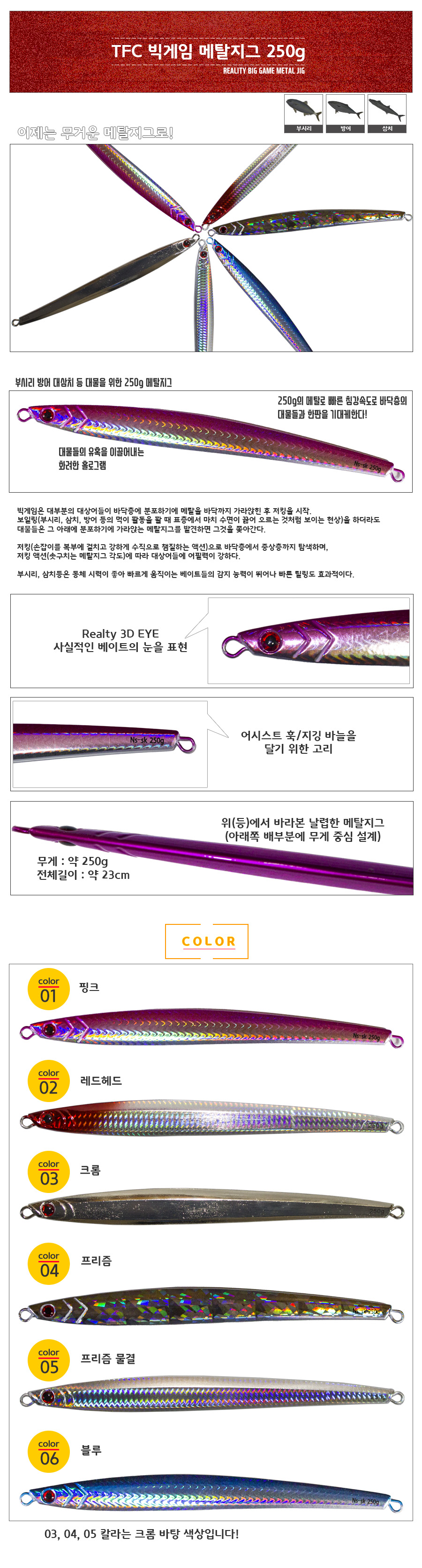 TFC 빅게임 메탈지그 250g 롱지그 부시리 방어 지깅