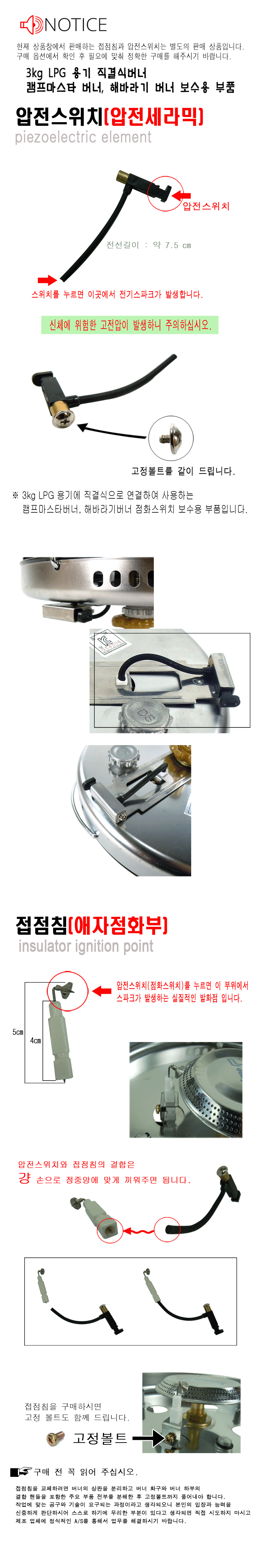 3kg LPG 가스용기 직결식버너 캠프마스타 해바라기버너 점화스위치 압전스윗치 착화버튼
